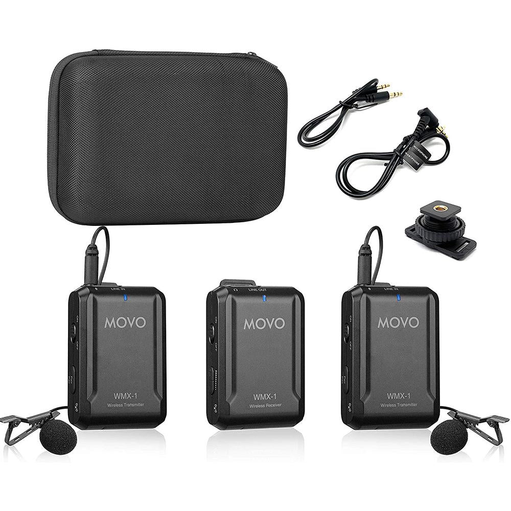 Movo WMX-1-DUO 2.4GHz Dual Wireless Lavalier Microphone System bundle