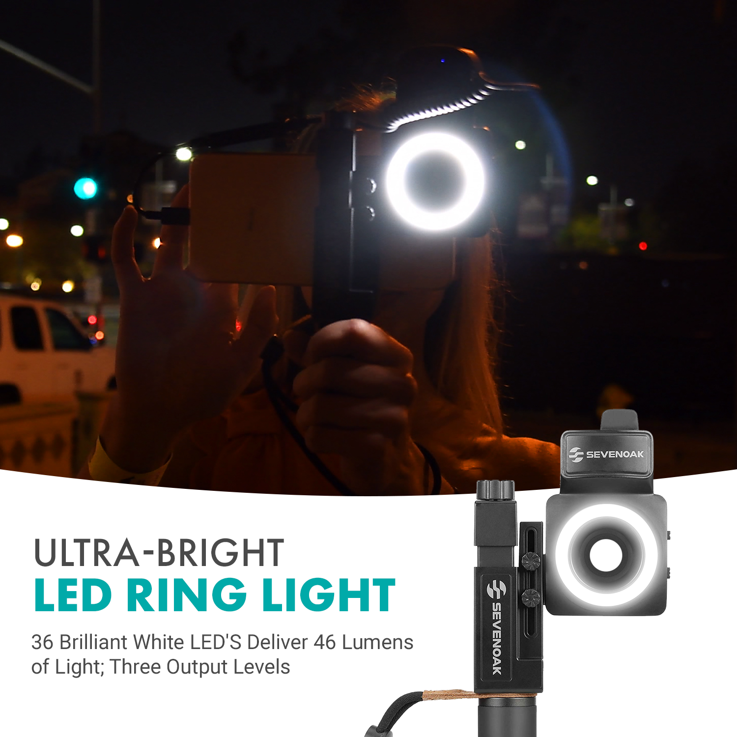 LED Light: 36 brilliant white LED's deliver 46 lumens of light perfect for vlogging; Three output levels, powered by the internal SmartCine rechargable battery